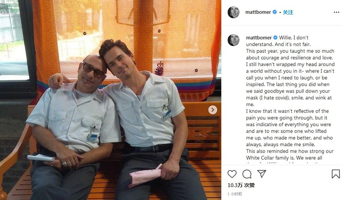 《妙警贼探》主演马特·波莫(右)在个人社交媒体发文悼念。