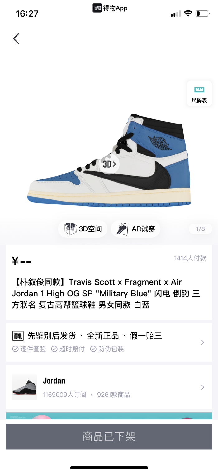 得物表示,公司关注到在国外多个电商平台的公开数据中,该款商品也存在相同的溢价。该款鞋全名为“AJ1闪电倒钩三方联名款”,上市后就受到追捧。
