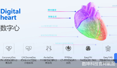 据官网介绍,数坤科技成立于2017年6月,总部位于北京,是医疗AI科技公司、国家高新技术企业和中关村高新技术企业,曾自主研发了领先的医学AI神经网络,推出 “数字心”“数字脑”“数字胸”“数字腹”“数字肌骨”平台,形成“数字人体”全场景影像 AI 解决方案,为心脏病、脑卒中、癌症等人类首要危重疾病提供智能诊疗。