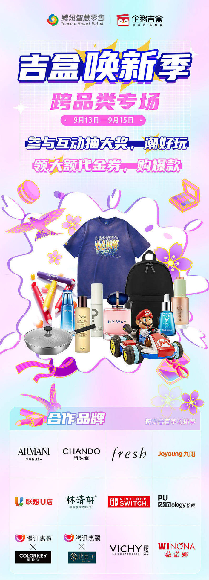 近日,腾讯智慧零售旗下营销IP“企鹅吉盒”小程序再度更新,联合包括阿玛尼美妆、自然堂、太平鸟、SWITCH、联想在内的近30家美妆、服饰、3C等领域大牌开启为期5日的主题活动“吉盒唤新季”,并于最后两日携手亚瑟士、GXG、百丽、波司登、UR等20家品牌集中呈现服饰专场福利,为用户带来优惠福利及有趣体验。