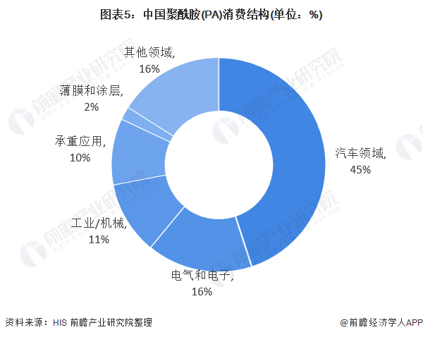 3、汽车和电子电气工业为PA主要消费领域