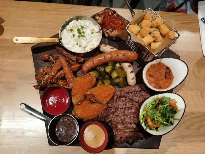 其实,环球影城乐园内有多家餐厅可以选,快餐为主、也有可以点餐的餐厅。以“三把扫帚”餐厅为例,一份炸鱼薯条88元,外皮酥脆的炸鱼和薯条,足够一个成人的食量,胃口小的人还吃不完;“老巢”餐厅内的沙爹鸡肉披萨和海鲜面,一份的价格均在80元以内;乐园外城市大道上的“五杯”餐厅,一份包含了牛排、鸡翅、香肠、薯条、土豆沙拉等在内的招牌组合套餐,够4-5人吃,标价为388元……