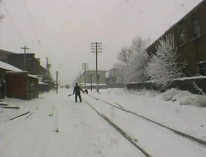 火车离开站台再驶出画面。在这部影片中,物体与人物时远时近,不同景别的视觉变化,形成了纵深的场面调度,也就是今天我们所说的“长镜头”。