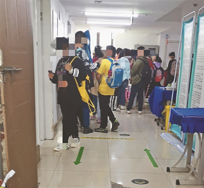 9月11日(周六)上午,新世界百货附近,某校外培训机构门前学生扎堆。
