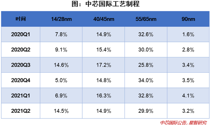 与代工龙头台积电相比,中芯国际面对的下游领域有明显的不同。台积电2020年来自5nm和7nm的营收合计超过41%,来自28nm及以下的收入合计约72%,产品的48%来自手机,33%来自高性能计算机,可见台积电代工的产品多为先进制程的手机AP(ApplicationProcessor,应用芯片)和CPU等。