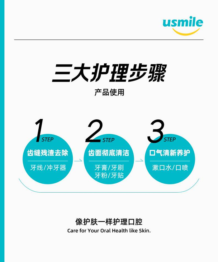 usmile 认为,当消费者准确了解口腔问题产生的原因后,不仅需要运用科学的口腔护理方法,同时也需要搭配有效产品。