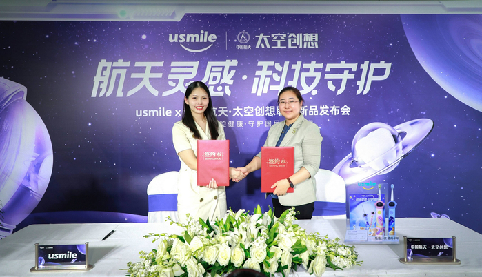 2021 年 7 月,usmile 与中国航天·太空创想联名,推出含氟刷丝的儿童电动牙刷,以「航天员不能有龋齿」的角度切入,倡导年轻的 95后宝爸宝妈能够从宝宝时期关注孩子的口腔健康,避免多数因成长中没被重视而导致的口腔疾病。