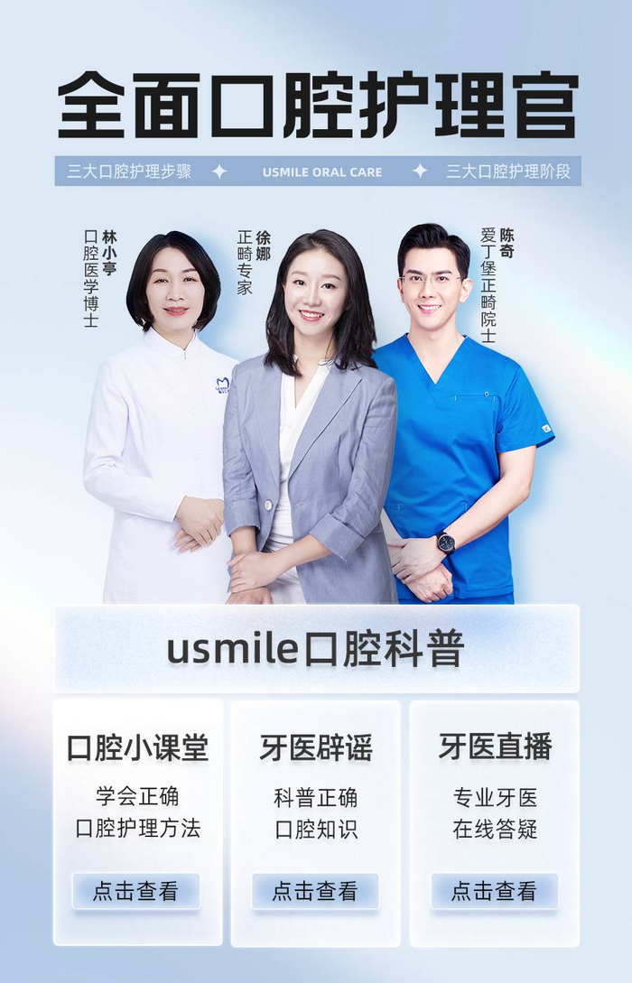 此外,usmile 与国内外口腔全科医师、口腔医学博士和正畸专家一起,定义了口腔护理的「三个发展阶段和三大护理步骤」。