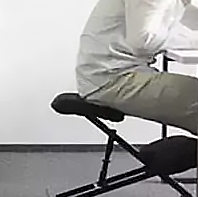 大腿与地面平行,小腿与地面垂直,两脚刚好踩到地面。如果两脚无法平踩落地,那么需要在脚下垫一个脚垫,例如一个扁平的盒子。 |
