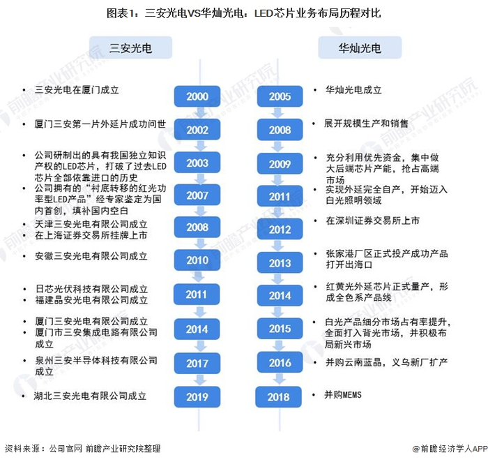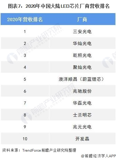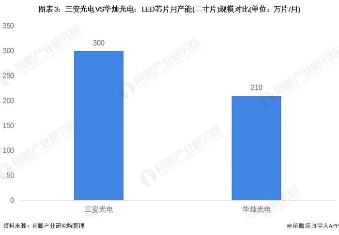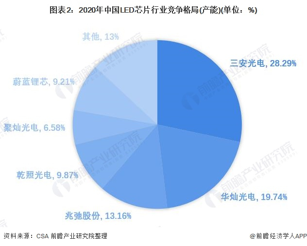 原标题:干货!2021年中国LED芯片行业龙头企业对比:三安光电VS华灿光电 谁是LED芯片行业龙头? 来源:前瞻产业研究院