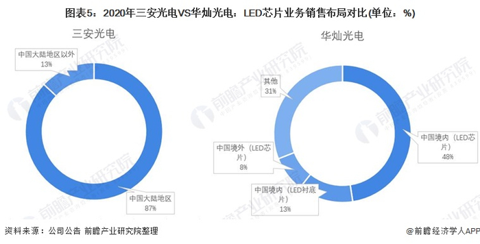 ——LED芯片销售布局对比:均以国内市场为主
