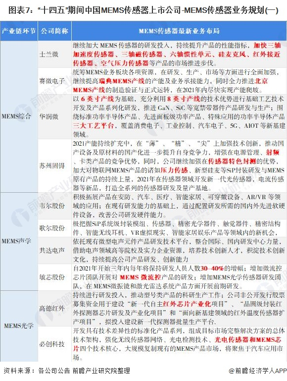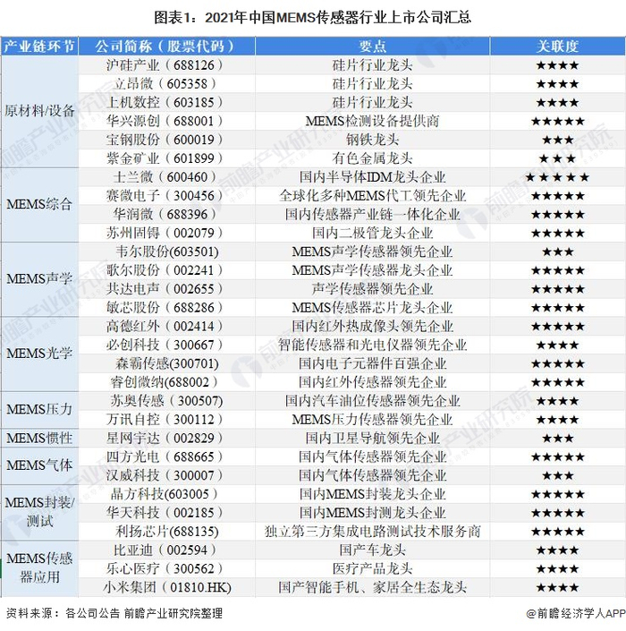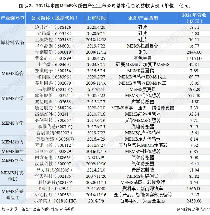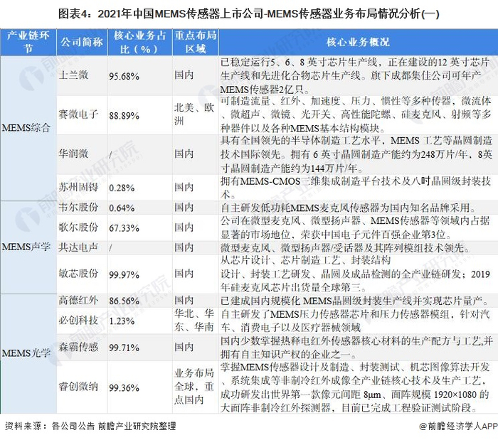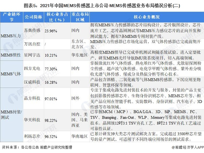 【最全】2021年MEMS传感器行业上市公司全方位对比(附业务布局汇总、业绩对比、业务规划等)