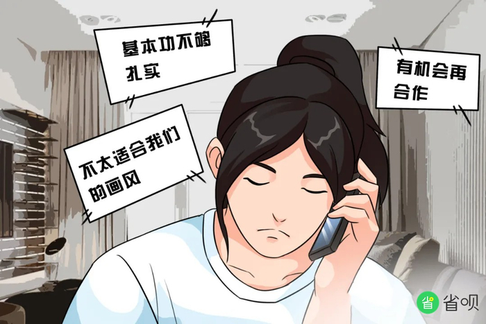 小余深受打击,一次次的拒绝让她精神萎靡,一度怀疑自己不是画画这块料,放弃的念头也油然而生。“当时的我真的放弃了,差不多一年没有再碰画画,我想换条路走。但每次我一读那本小说,画画的表达欲就上来了,我还是放不下漫画这个梦想,如果不尽全力去实现,也许一辈子都会后悔。”就这样,小余不断地练习画画基本功,在绘画之余也坚持向漫画工作室投简历,功夫不负有心人,这次,她得到了想要的回复。