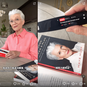 同时,作为三位亿万富翁的母亲,梅耶·马斯克的商业头脑肯定也不容质疑。就有网友大胆猜测除了学中文外,或许梅耶·马斯克还将开启在中国的带货之路,首选中国黑科技产品或许正是这支有道词典笔。