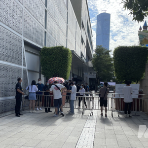 深圳益田假日广场的苹果直营店外,排队等待进入的人。