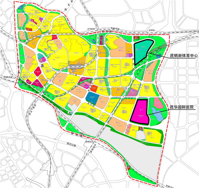 在此次控规调整中,昆华国际医院和昆明新体育中心的位置也进一步得以明确。