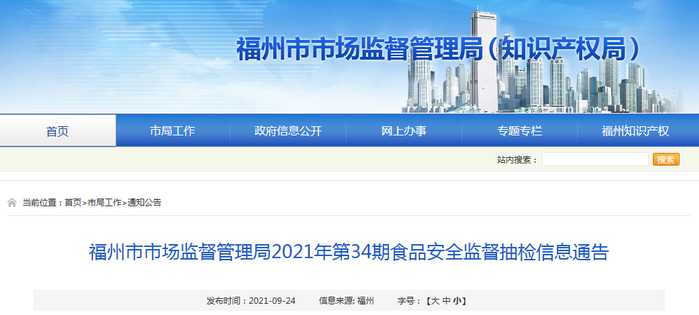 福州市市场监督管理局抽检食品178批次均合格