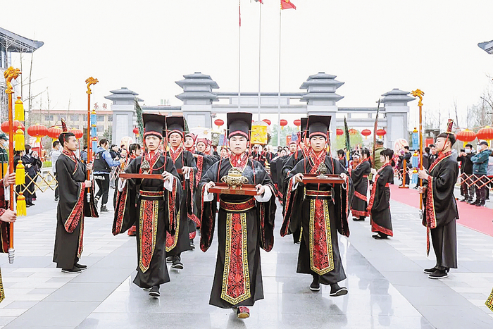 本报讯(记者 石英杰)共牢、合卺(jǐn)、解缨结发,9月19日下午,在汉风唐韵的保定涞源县华中小镇,上演了美轮美奂的原创国风音乐剧《石之恋》,剧中完整复刻呈现了唐代婚礼,这些礼仪出自儒家经典之一的《仪礼》,由《琅琊榜》《芈月传》等古装大剧礼仪指导教授张晓龙担任指导。据悉,今年以来,深耕保定20余载的华中集团,在华中小镇举办首届国风文化节,开办国风市集,开展八雅六艺活动,汉服体验,评选国风少年,致力于打造“国风小镇”,在地产项目中彰显文化的力量,为保定成为京津冀世界级城市群中的品质生活之城增加亮点。