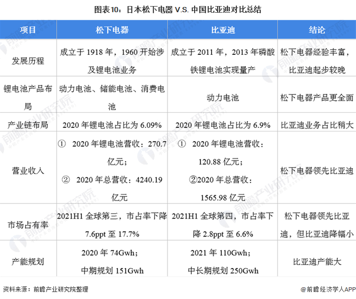 干货!2021年中日锂电池龙头企业对比——日本松下电器VS中国比亚迪
