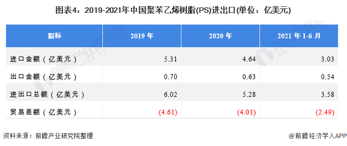 原标题:2021年中国聚苯乙烯树脂(PS)市场供需情况分析 国内供不应求、进出口处于贸易逆差 来源:前瞻产业研究院