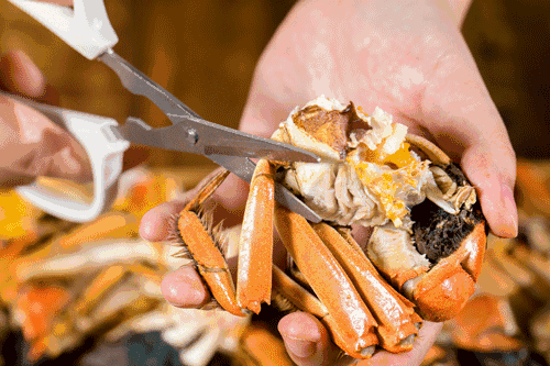 小贴士:河蟹的蟹腮、蟹胃、蟹肠、蟹心这四个部位是不能吃的,寒性太大!而且这几个地方往往“脏东西”比较多,味道也不怎么好。