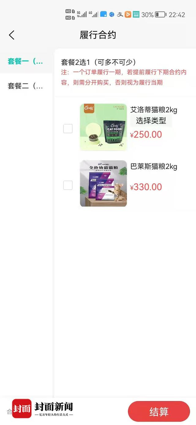 9月23日,小年(化名)告诉封面新闻记者,自己在大渡口熊孩子宠物店领养了小猫,当时店主说需要实名认证注册APP帮他们做推广,拿着自己手机帮忙操作,然后让她上传身份证认证,签了字,并没有提及合同内容,也没有告知要买猫粮和猫粮的价格。小年购买的猫粮是250元的套餐,一份2kg。她拿着猫粮的图片询问该品牌官方店铺客服,得知这种猫粮5kg售价99元。