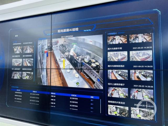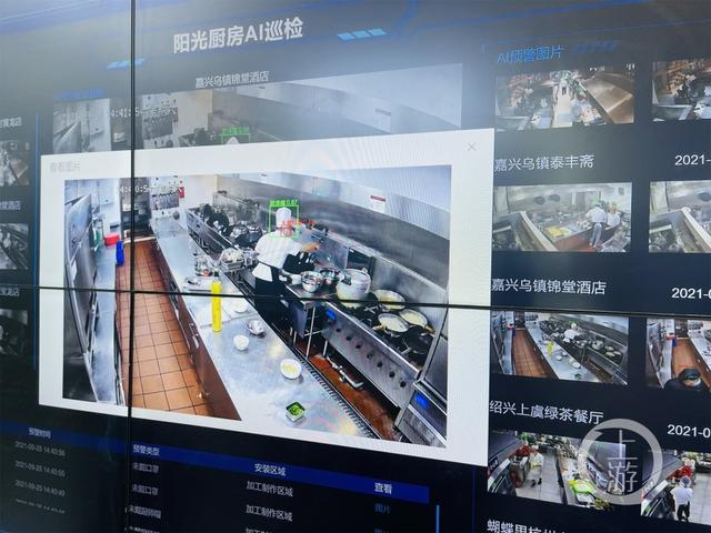 ▲9月25日,浙江乌镇,监管平台可以实时监控后厨的操作规范情况。摄影/上游新闻记者 时婷婷