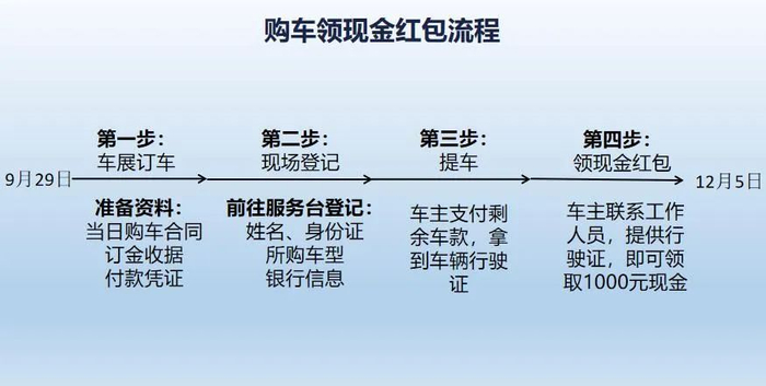 第二重优惠为车展现场每日前100名购车观众,可领取现金红包1000元。