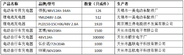 电动车充电器质量不合格 安徽省天长市4家企业召回
