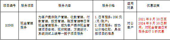 九、降低对公现金管理服务费,对所有对公客户实行5折优惠,优惠期限为3年。具体如下: