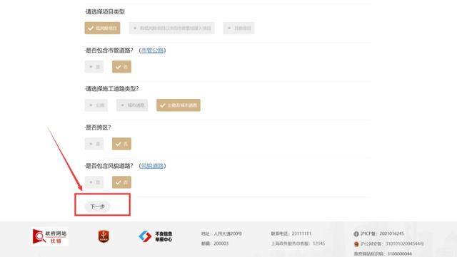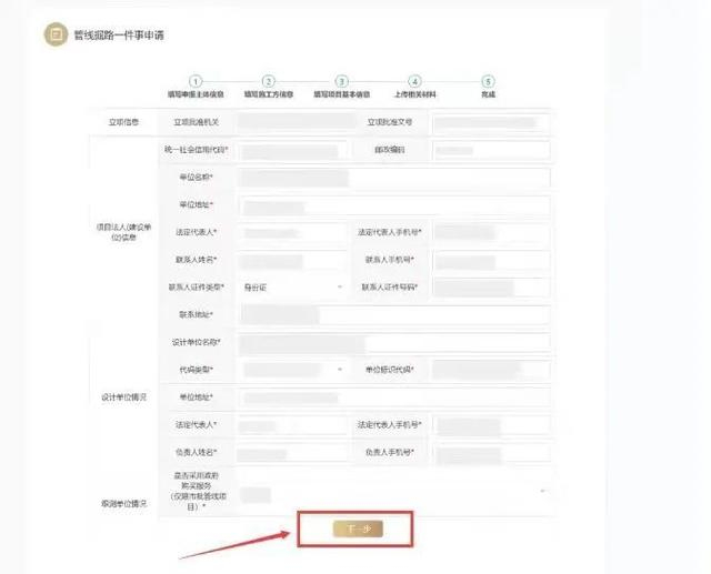 申报信息的第二部分为施工方信息,请如实进行填写,填写后点击“下一步”。