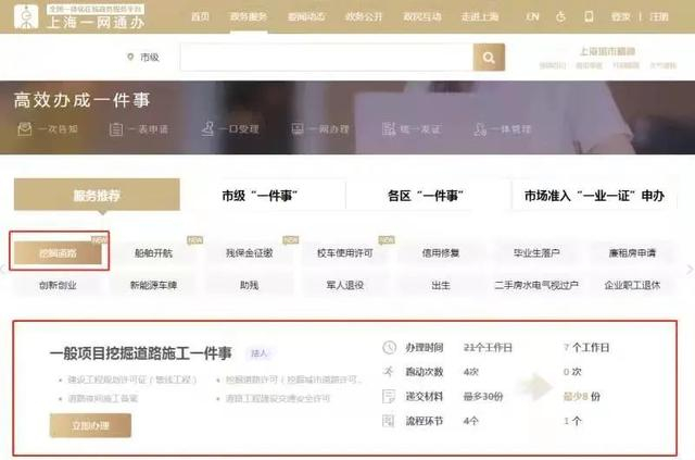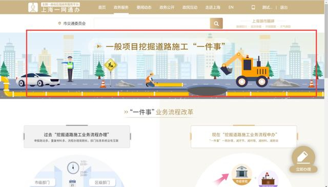 好消息!今天起,市级重点“一件事”之一的“一般项目挖掘道路施工一件事”在上海市“一网通办”平台的“高效办成一件事”专栏中正式上线啦!