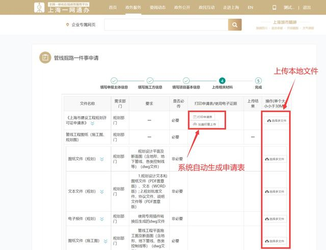 按要求上传申请材料,其中申请表可通过系统生成,不能系统生成的,按照申请材料的要求上传本地文件。