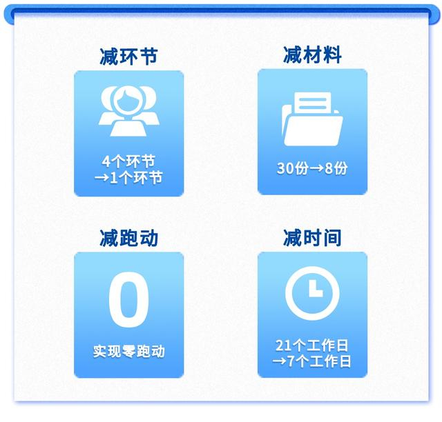 减时间,由原来串联的21个工作日减少为最多7个工作日,减幅67%,大幅节省申请人的时间成本。