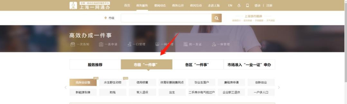 访问上海市“一网通办”,网址为:https://zwdt.sh.gov.cn/govPortals/index.do