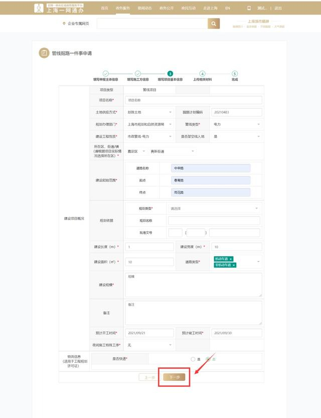 智能引导选择好后,点击“下一步”按钮,进入申请信息的填报页面。