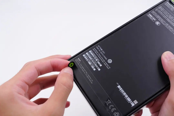 并且此次iPhone 13全系的包装盒均取消了表面的塑料膜,改用上下两条贴纸封装。