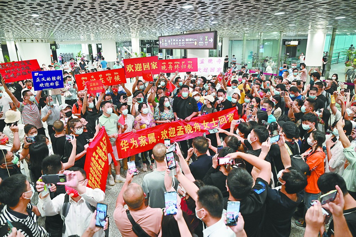 25日,深圳宝安国际机场,各界人士等候从加拿大回国的孟晚舟。