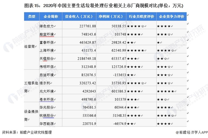 2)国内老牌运营企业,如上海环境和光大环境等,凭借良好的企业背景和专业经验,牢牢把控国内市场的主要份额;
