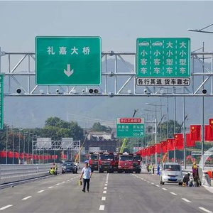 又如重庆快速路二横线西段工程西连渝蓉高速和绕城高速,经大学城、物流园,通过土主隧道穿越中梁山,然后在井口经礼嘉大桥跨越嘉陵江,东接两江新区礼嘉片区。