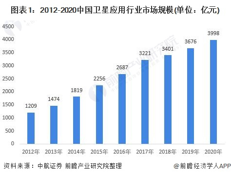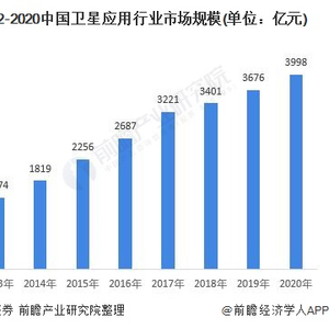 近年来,我国卫星应用行业市场规模稳步提升,但增速有所放缓。据统计,2019年我国卫星应用行业市场规模为3676亿元。前瞻初步测算2020年我国卫星应用行业市场规模约为3998亿元。