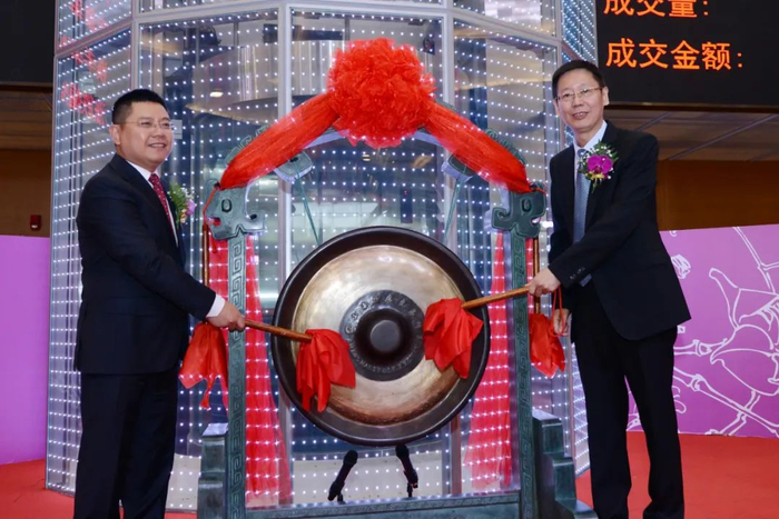 吉祥航空董事长王均金(左)与总裁赵宏亮在上交所参加上市仪式