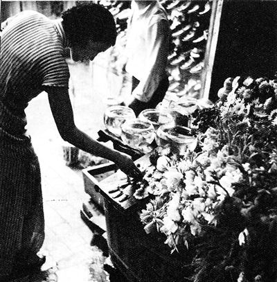 旧时,每到初秋的清晨,津城街巷里常能看到挑着担子售卖菊花的小贩。1946年10月27日《大公报》刊发的随笔《花贩》,就把这一景象描绘得十分传神:“浓厚的雾气遮蔽着早晨的太阳,墙下的盛开的菊花一对一对的都摆得齐整了。”各色花朵在绿叶的映衬下异常鲜丽,淡雅的香气在晨风中飘溢,有引人陶醉的魔力。“这一片绿波漾漾的菊海,贪看着那舒卷不一、阔细弯垂各色的花瓣。花贩子在旁边如艺术家鉴赏当前的作品……每一个骨朵有待开放的生命,能够吐出奇伟的壮观,为他的技艺增加辛勤的代价。弥漫的雾气消失后,晴空中充满了新鲜的空气,街边的菊丛更显得新清。”