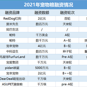 不仅如此,资本的频频下场更是让这个市场的竞争更加激烈。据不完全统计,仅2021年上半年,就有约10个宠粮品牌拿到了融资,大多数品牌的单笔融资都达到了千万以上,最高数额达4亿元。