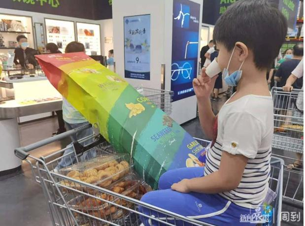在顾客们的购物车中如一道道移动的彩旗