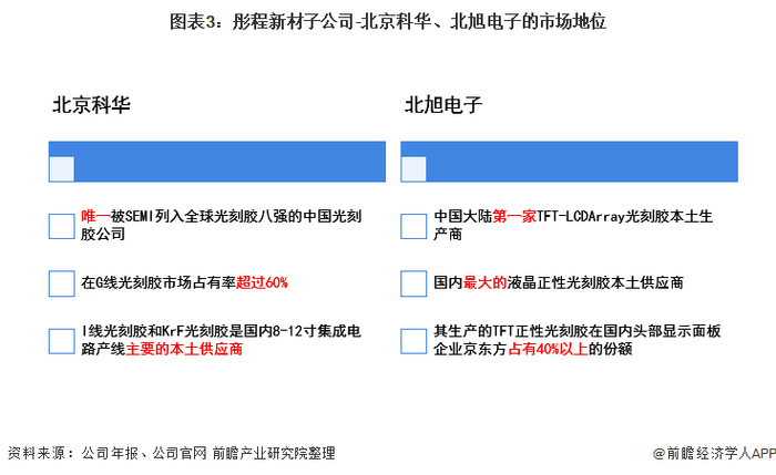 在2020年7月及9月战略收购国内半导体光刻胶龙头科华微电子及国内显示面板光刻胶龙头北旭电子,其中,北京科华是唯一被SEMI列入全球光刻胶八强的中国光刻胶公司,而北旭电子是是中国大陆第一家TFT-LCDArray光刻胶本土生产商,也是国内最大的液晶正性光刻胶本土供应商。