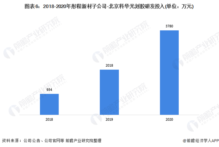 光刻胶是典型的高技术壁垒行业,从研发投入来看,2018-2020年,彤程新材子公司-北京科华在2018-2020年的研发投入不断增长,由934万元增长至3780万元,占收入比例约四成: