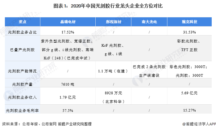 1、中国光刻胶行业本土企业全方位对比