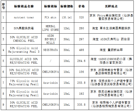 37款刷酸产品标注妆字号的16件样品总体情况较好