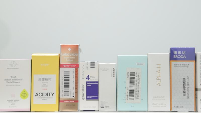 澎湃新闻注意到,《化妆品标识管理规定》规定,化妆品禁止明示或者暗示具有医疗作用,避免使用“换肤”等不当宣称。经核查,7件样品包装或网页宣称有“刷酸”、“换肤”等字样。